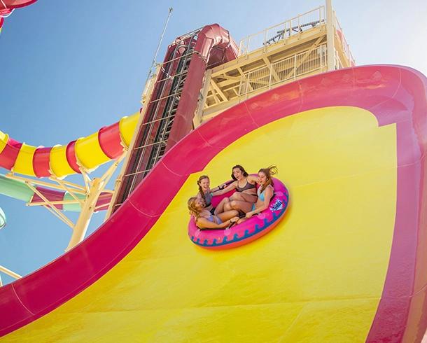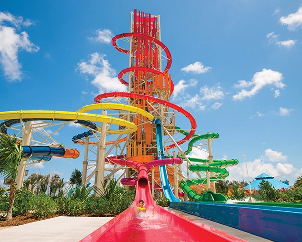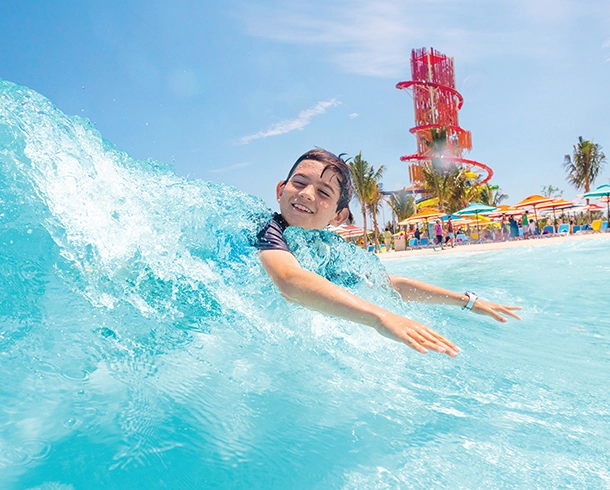 From giggle-worthy tides to shriek-inducing slides, you’re in for non-stop fun at private destination, Perfect Day at CocoCay. Bounce, climb and swing your way through obstacles that make a splash. Take on the biggest wave pool in the Caribbean. Or if you’re up for a true rush, challenge yourself on the tallest waterslide in North America — Daredevil’s Peak®. Whatever your thrill threshold, you’ll find firsts to test your bravery at Thrill Waterpark®. And you can only experience it with Royal Caribbean®.